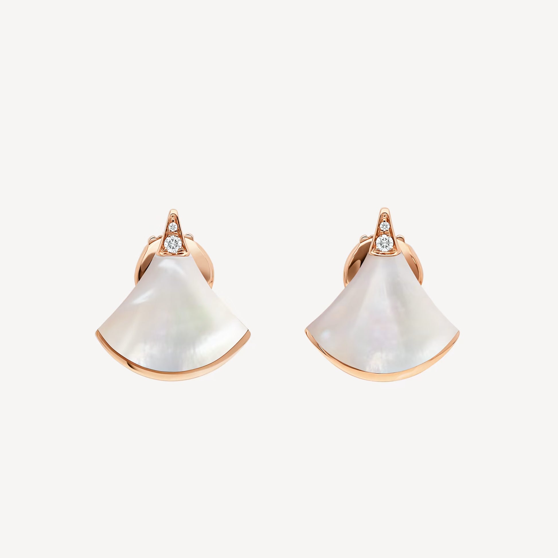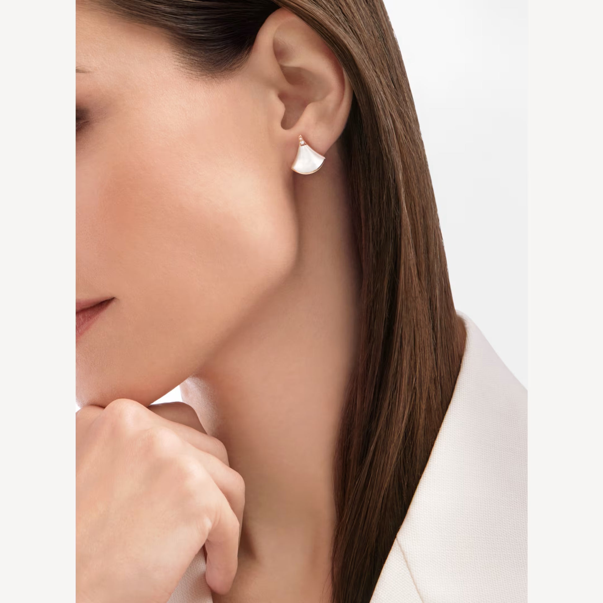 أقراط ديفاز دريم. أقراط ديفاز دريم مصنوعة من الذهب الوردي عيار 18 قيراطًا، مرصعة بعرق اللؤلؤ والألماس المرصوف. مستوحاة من الأناقة الأنثوية وسحر المدينة الخالدة، تُكرم أقراط ديفاز دريم أجمل النجمات بروح رومانية لا تُخطئها العين. تتميز هذه الأقراط بأنوثتها ورقيها، وقد صُممت لتجسّد روعة رخام حمامات كاراكالا والمنحنيات الحسية لفسيفسائها المروحية، انعكاسًا لجوهر الجمال الإيطالي. الخامة: ذهب وردي. وزن الألماس (قيراط): 0.03. الأحجار الكريمة: ألماس، عرق اللؤلؤ. اللون: أبيض. صنع في: إيطاليا.