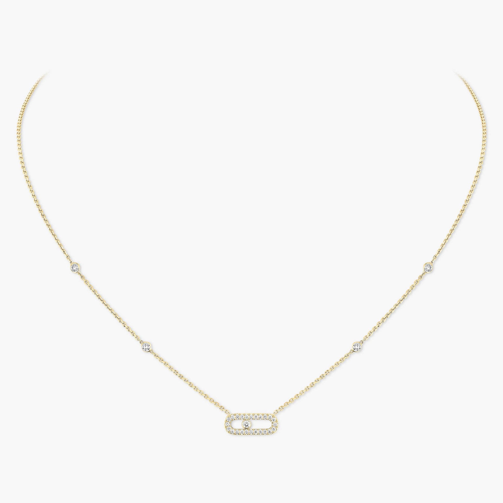 انغمسي في سحر هذا العقد الماسي المرصوف بالذهب عيار 18 قيراطًا، المصنوع يدويًا بالكامل والمرصّع بماسة بقطع لامع، ضمن مجموعة "موف"، التصميم المميز لدار مجوهرات ميسيكا الفاخرة. سلسلته الرقيقة مزينة بقفص "موف" الذي يحمل ماسة مرصعة بدقة، تتحرك وتتألق وفقًا لحركات اليد. عقد بسيط من الذهب والماس يُزيّن صدركِ بإشراقة رقيقة وثمينة كل يوم. يتميز الذهب المتلألئ من دار ميسيكا بنعومته الفائقة، ما يجعله جوهرة فاخرة راقية.